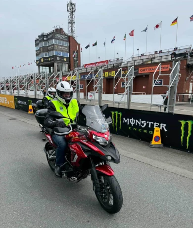 Experience the thrill of riding the course on a Benelli motorcycle alongside expert guides, including racing legends Ben Birchall and Rob Fisher!